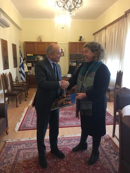 σήμερα η Αντιπεριφερειάρχης Π.Ε. Ιωαννίνων (και υπεύθυνης Αναπτυξιακού Σχεδιασμού) κ. Τατιάνα Καλογιάννη, με τον Πρέσβη της Ιταλίας στην Ελλάδα κ. Luigi Marras σε συνάντηση που είχαν στην Περιφέρεια Ηπείρου.