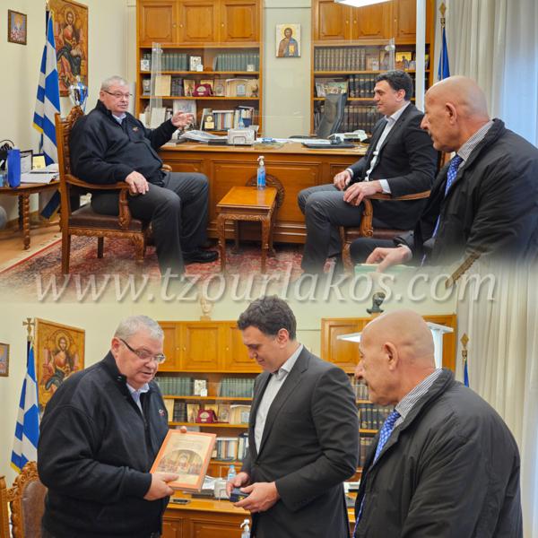 Ο Υπουργός Κλιματικής Κρίσης και Πολιτικής Προστασίας κ. Βασίλης Κικίλιας, συνοδευόμενος από τον Γενικό Γραμματέα Πολιτικής Προστασίας κ. Βασίλειο Παπαγεωργίου επισκέφθηκαν σήμερα τον Περιφερειάρχη Ηπείρου κ. Αλέξανδρο Καχριμάνη, με τον οποίο είχαν εκτενή συζήτηση για ζητήματα που αφορούν την πρόληψη και αντιμετώπιση των έκτακτων καιρικών φαινομένων κ.α.