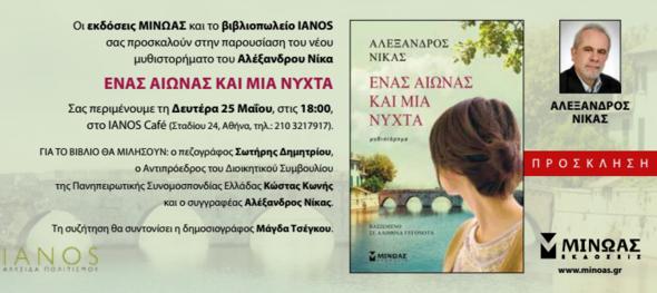 ''Ένας αιώνας και μία νύχτα''. Το βιβλίο του Ηπειρώτη συγγραφέα Αλέξανδρου Νίκα, παρουσιάζεται την Δευτέρα 25 Μαϊου 2015, ώρα 18.00' στο ΙΑΝΟΣ Cafe, Σταδίου 24, Αθήνα