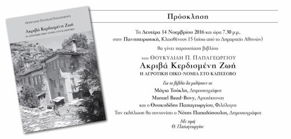 Ακριβά κερδισμένη ζωή (Η αγροτική οικο-νομία στο Καπέσοβο). Το βιβλίο του Θουκιδίδη Π. Παπαγεωργίου