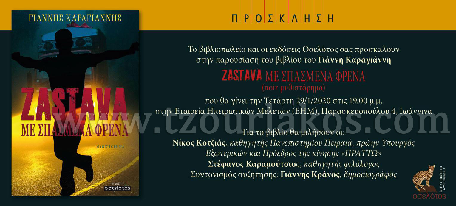 Πρόσκληση για την παρουσίαση του νέου μου βιβλίου στα Γιάννενα που θα γίνει την Τετάρτη 29 Ιανουαρίου 2020,στήν εταιρία Ηπειρωτικών Μελετών (ΕΗΜ) Παρασκευοπούλου 4 Ιωάννινα.