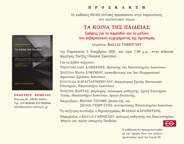 ΤΑ ΚΟΙΝΑ ΤΗΣ ΠΑΙΔΕΙΑΣ Σκέψεις για το παρελθόν και το μέλλον του κυβερνητικού εγχειρήματος της Αριστεράς