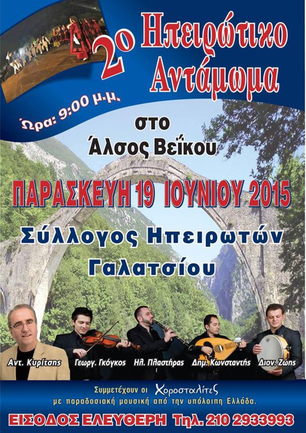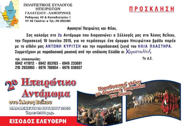 Hπειρώτικο αντάμωμα του Συλλόγου Ηπειρωτών Γαλατσίου, την Παρασκευή 19 Ιουνίου 2015, ώρα 21.00' στο... Hπειρώτικο αντάμωμα του Συλλόγου Ηπειρωτών Γαλατσίου, την Παρασκευή 19 Ιουνίου 2015, ώρα 21.00' στο 'Αλσος Βέϊκου. Tweet Προηγούμενο Επόμενο