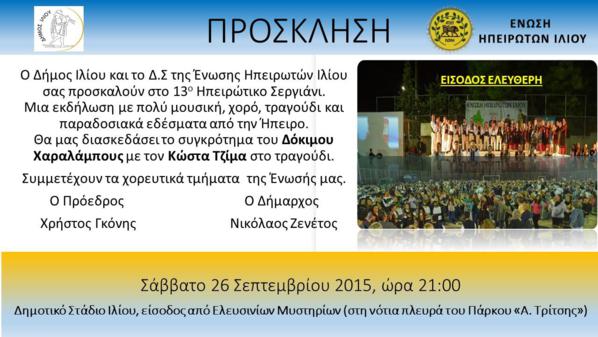 13o ΗΠΕΙΡΩΤΙΚΟ ΣΕΡΓΙΑΝΙ ΑΠΟ ΤΗΝ ΕΝΩΣΗ ΗΠΕΙΡΩΤΩΝ ΙΛΙΟΥ