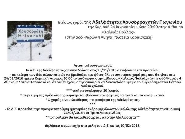 Η Αδελφότητα Χρυσορραχητών Πωγωνίου, κόβει την Πίτα της και διασκεδάζει, την Κυριακή 24 Ιανουαρίου 2016, ώρα 20.00' στο ''Χαλκιάς Παλλάς'', Ψαρών 4, πλατεία Καραϊσκάκη, Μεταξουργείο