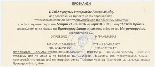 Κοπή Πίτας Ηπειρωτών Δήμου Λαυρεωτικής
