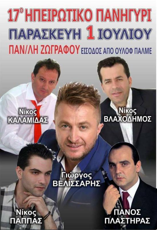 Ο  Σύλλογος Ηπειρωτών Αστυνομικών διοργανώνει Ηπειρώτικο Πανηγύρι, την Παρασκευή 1 Ιουλίου 2016, ώρα 21.30', στην