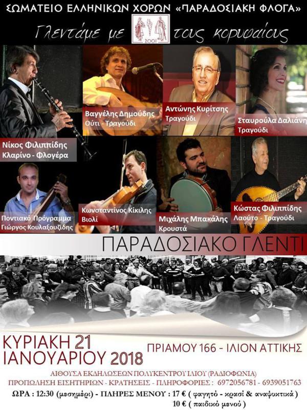 Σωματείο Παραδοσιακών χορών ''ΦΛΟΓΑ''. Παραδοσιακό γλέντι την Κυριακή 21 Ιανουαρίου 2018 στήν αίθουσα Εκδηλώσεων Πολυκεντρου Ιλίου.(Ραδιοφωνία).