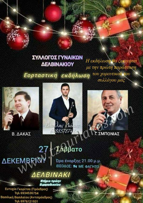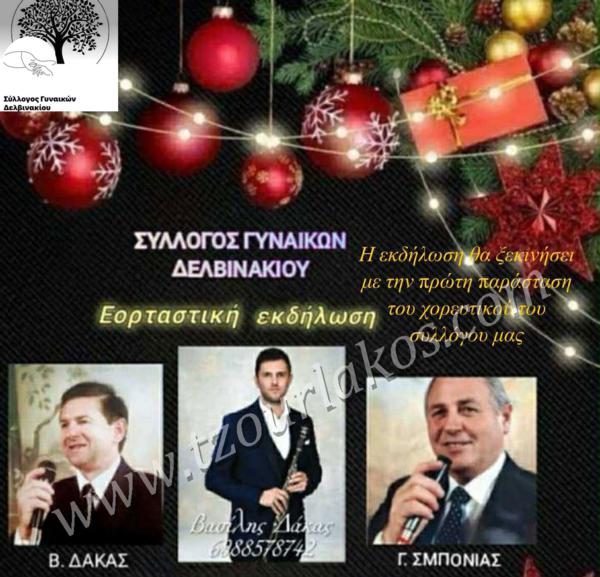 Ο Σύλλογος Γυναικών Δελβινακίου διοργανώνει Μουσικοχορευτική Εορταστική Εκδήλωση το Σάββατο 27 Δεκεμβρίου 2025 στήν αίθουσα του πρώην Ειρηνοδικείου στο Δελβινάκι!!