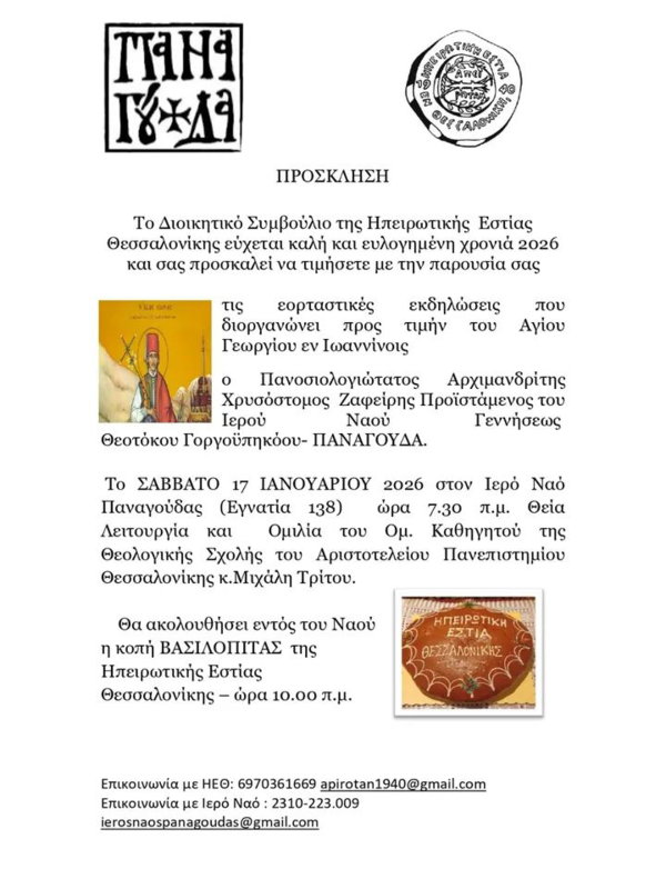 ''Ηπειρώτες Θεσσαλονίκης''.Εορταστικές Εκδηλώσεις για Άγιο Γεώργιο και κοπή Πίτας... Εορταστικές Εκδηλώσεις για Άγιο Γεώργιο έξ Ιωαννίνων,και κοπή Πίτας... Γίνε μέλος της Ομάδας μας στο FB. Δώσε δύναμη στην προσπάθειά μας!! ►Ή 'Ηπειρος στήν Καρδιά μας!!!Τζουρλάκος Ιστός. Θέλεις πραγματικά να γνωρίσεις τα χωριά του Πωγωνίου,της Ζίτσας,της Κόνιτσας και όλα τα Ιστορικά και Εκκλησιαστικά Μνημεία τους;;Θέλεις να ακούσεις αυθεντικό κλαρίνο από Εκδηλώσεις και Πανηγύρια:::Επισκέψου και κάνε εγγραφή στο κανάλι μας TZOURLAKOS στο YouTube και διάλεξε ένα από τα 1400 βίντεο μέχρι στιγμής και συνεχίζουμε!.. Tweet Προηγούμενο Επόμενο