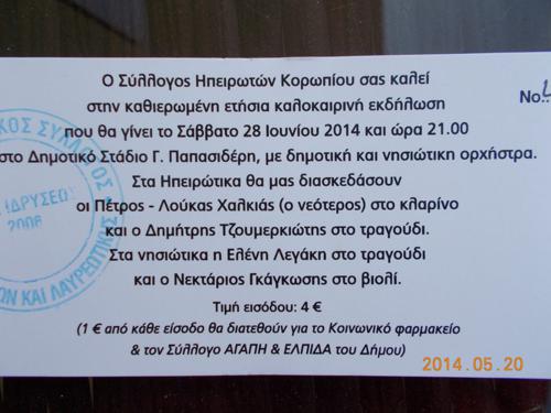 Εκδήλωση-Ηπειρώτικο αντάμωμα και γλέντι, του Συλλόγου Ηπειρωτών Κορωπίου το Σάββατο 28 Ιουνίου 2014, ώρα 21.00' στο...