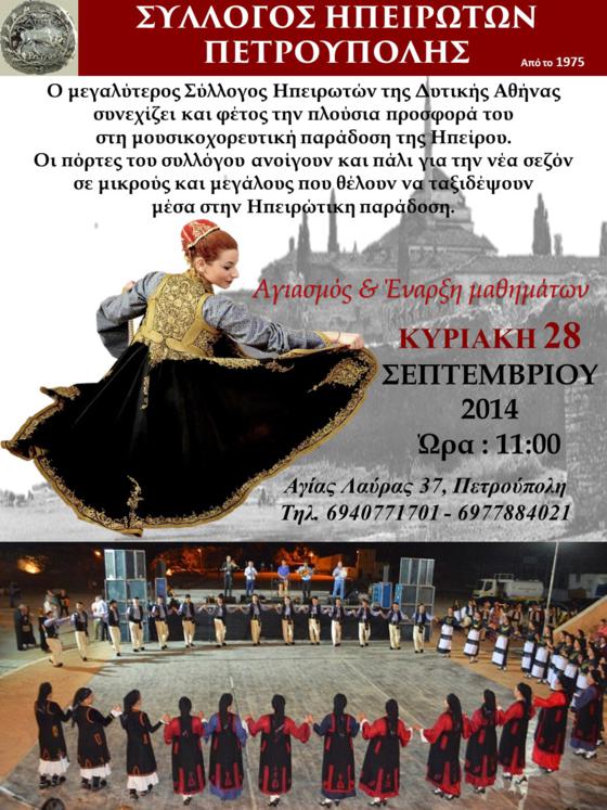 Σύλλογος Ηπειρωτών Πετρούπολης.Αγιασμός και έναρξη μαθημάτων παραδοσιακού χορου την Κυριακή 28 Σεπτεμβρίου...