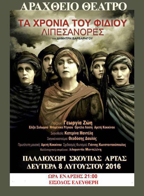 Αράχθειο Θέατρο, στο Παλαιοχώρι Σκούπας Άρτας. Η Τζουμεριώτισσα ηθοποιός Γεωργία Ζώη, με δωρεάν είσοδο, ανεβάζει την θεατρική παράσταση ''Τα χρόνια του φιδιού-Λιπεσανόρες'',
