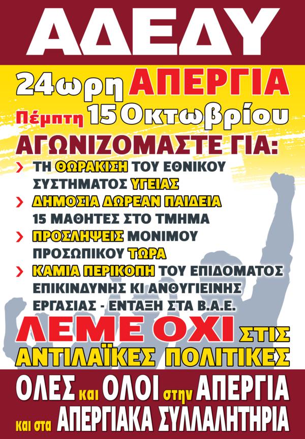 Την Πέμπτη 15 Οκτώβρη ΑΠΕΡΓΟΥΜΕ και ΑΠΑΙΤΟΥΜΕ ΑΜΕΣΑ: