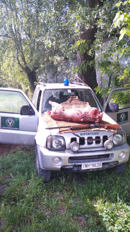 Η περιοχή τέθηκε σε διακριτική παρακολούθηση, ώστε να εντοπιστεί ο δράστης του πυροβολισμού. Μετά την πάροδο κάποιας ώρας, οι Θηροφύλακες κινήθηκαν προς το σημείο που ακούστηκε ο πυροβολισμός, ανάμεσα στη θαμνώδη βλάστηση και εντόπισαν ένα άτομο, που είχε θηρεύσει έναν αγριόχοιρο.