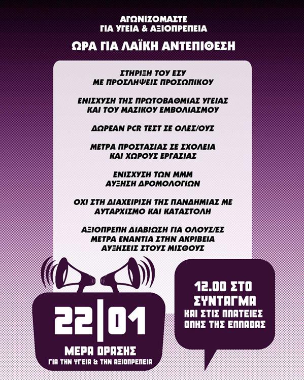 Πανελλαδική Κινητοποίηση - 22/1 Μέρα Δράσης για την Υγεία και την Αξιοπρέπεια