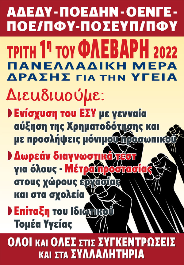 Όλοι στην Κινητοποίηση για την Υγεία Τρίτη 1 Φλεβάρη 2022