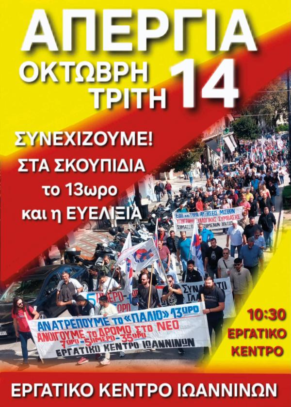 ΑΠΕΡΓΙΑ ΤΡΙΤΗ 14 ΟΚΤΩΒΡΗ 10:30 στο ΕΡΓΑΤΙΚΟ ΚΕΝΤΡΟ