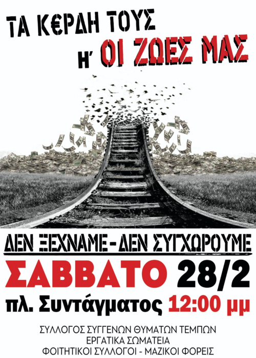 Η πραγματική δικαίωση για τα Τέμπη, για τους νεκρούς στους χώρους δουλειάς, για τα παιδιά μας, θα έρθει μέσα από τον οργανωμένο αγώνα για να ανατραπεί η πολιτική που γεννά καθημερινά νέα εγκλήματα.