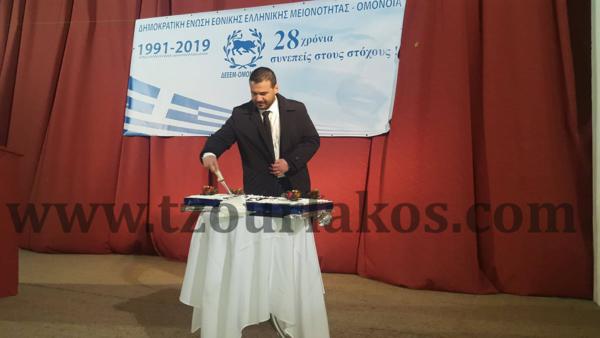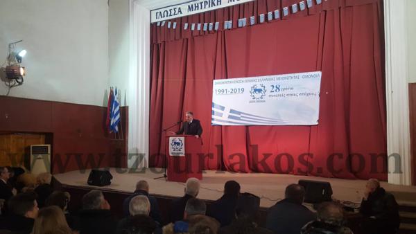 Ο Πρόεδρος της ΔΕΕΕΜ ΟΜΟΝΟΙΑ κ. Βασίλης Κάγιος αναφέρθηκε στους διαχρονικούς αγώνες της ΕΕΜ με την πτώση του κομουνισμού με την έμπνευση και το συντονισμό της ΟΜΟΝΟΙΑΣ. Πολλά απ τα προβλήματα που απ την αρχή αποτελούν τον πυρήνα του Προγράμματος της Οργάνωσης παραμένουν ζητούμενο και σήμερα ενώ προστίθενται νέα λόγω της δυσκαμψίας της Αλβανικής πολιτείας να εναρμονιστεί στα όσα επιτάσσουν διεθνείς συμβάσεις και πρακτικές.