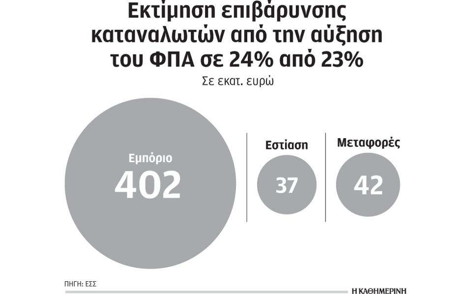 481 εκατ. θα κοστίσει στους καταναλωτές η αύξηση ΦΠΑ στο 24%, εκτιμά η ΕΣΕΕ