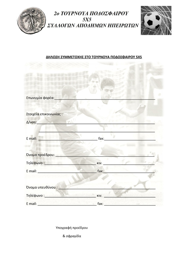 Δηλώσεις συμμετοχής Τουρνουά 5χ5 Συλλόγων Αποδήμων Ηπειρωτών
