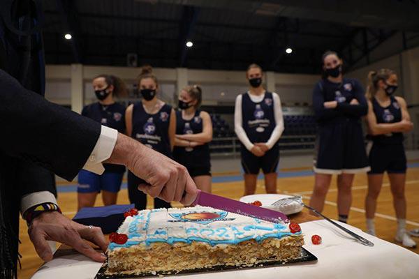 Στο παρκέ του Νέου Κλειστού Γυμναστηρίου Ιωαννίνων πραγματοποιήθηκε για πρώτη φορά φέτος η κοπή της Πρωτοχρονιάτικης πίτας λόγω της κατάστασης που βρίσκεται η χώρα μας, με τα απολύτως απαραίτητα μέλη της ομάδας και απομονωμένη από τον κόσμο που σε κάθε κοπή πίτας τα τελευταία χρόνια είχε την τιμητική του.