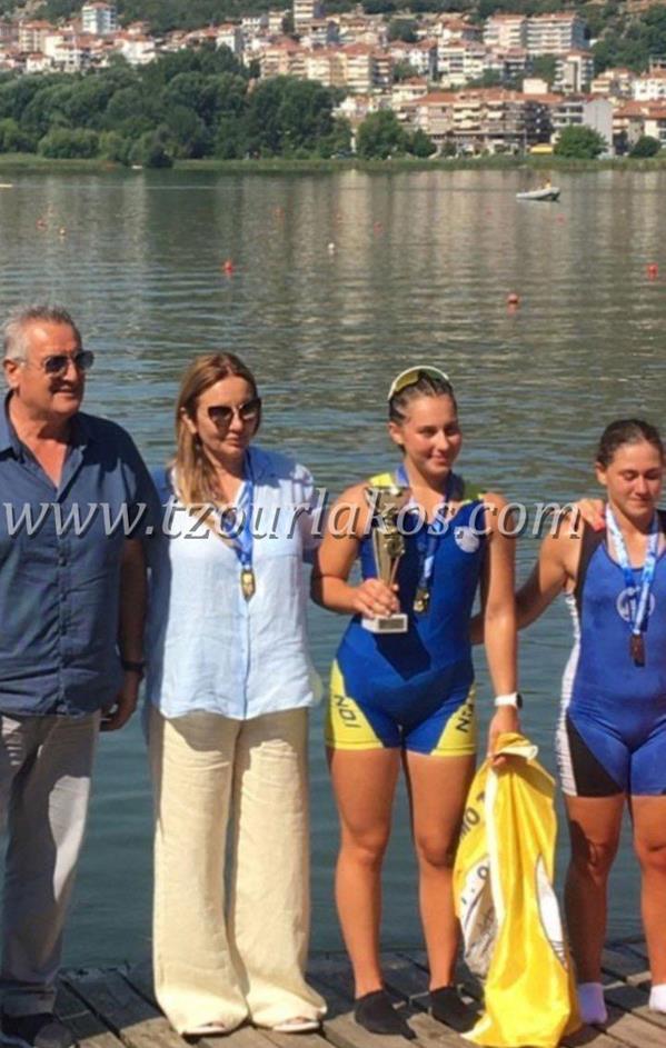 Πρώτη θέση στο μικρό τελικό του αγωνίσματος Διπλό Σκιφ Κορασίδων με τις αθλήτριες Σίμου Παναγιώτα και Γκρέστα Αικατερίνη