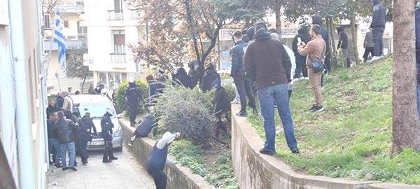 Οπαδοί του ΠΑΣ Γιάννινα που ανέμεναν τους προσαχθέντες, τους επιτέθηκαν φωνάζοντας συνθήματα όπως «δολοφόνοι» και πετώντας εναντίον τους μπουκάλια και άλλα αντικείμενα, ενώ οι αστυνομικοί δεν κατάφεραν να αποτρέψουν την εκδήλωση σωματικής βίας.