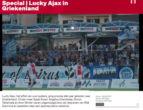 Με τη συμπλήρωση ενός έτους από τη διεξαγωγή του φιλικού αγώνα, οι βετεράνοι του Άγιαξ, οι Lucky Ajax όπως είναι το όνομά τους, θυμήθηκαν την παρουσία τους στην Ελλάδα και τα Ιωάννινα και στην επίσημη ιστοσελίδα του συλλόγου (ajax.nl) συνοδεύουν το ημίωρης διάρκειας βίντεο από την παρουσία τους στην Ελλάδα και το φιλικό παιχνίδι, με ένα συγκινητικό κείμενο για τους «φίλους» από τα Ιωάννινα.