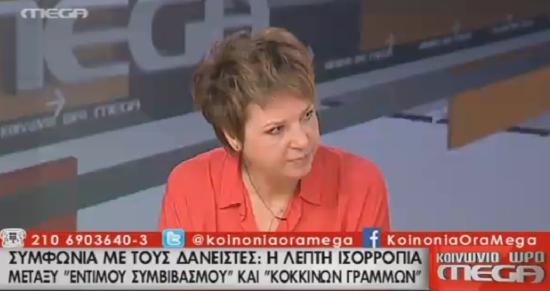 Η κοινοβουλευτική εκπρόσωπος του ΣΥΡΙΖΑ, βουλευτής Άρτας Όλγα Γεροβασίλη συμμετείχε το πρωί της Τρίτης, 19 Μαΐου 2015, στην εκπομπή "ΚΟΙΝΩΝΙΑ ώρα MEGA" στον τηλεοπτικό σταθμό MEGA.