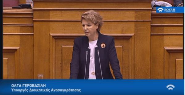 Απάντηση της Υπουργού Διοικητικής Ανασυγκρότησης, Όλγας Γεροβασίλη