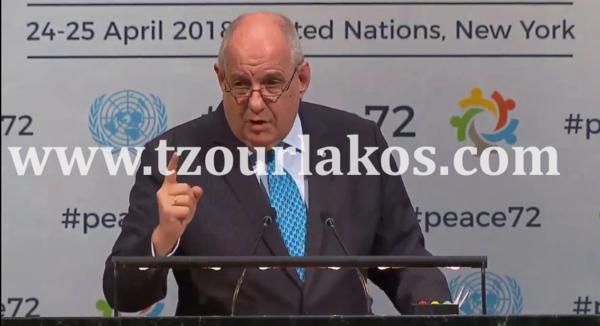 «Από το πρωί, έχω ακούσει όλους να αναφέρονται στην ειρήνη και στην αναγκαιότητα επιβολής της, όπου υπάρχουν εστίες πυρός, πόλεμοι, εντάσεις. Άκουσα εκατοντάδες φορές την ανάγκη της επιβολής ειρήνης. Είδα πολλά δάκρυα να τρέχουν. Θα επεσήμαινα σε όλους τους εμπλεκόμενους, στις πιο κρίσιμες και ευαίσθητες περιοχές του πλανήτη, όπως η δική μας στην Ανατολική Μεσόγειο και στη Μέση Ανατολή, να αγκαλιάσουν τη σπουδαιότητα της εδραίωσης της ειρήνης, υπηρετώντας τις αρχές του ΟΗΕ και αποφεύγοντας να παραβιάζουν τις υποχρεώσεις τους όπως απορρέουν από τα διεθνή Δίκαια, τους διεθνείς Νόμους, Συνθήκες και Συμφωνίες. Ας μετατρέψουν τη λέξη ειρήνη, που τόσες πολλές φορές είπαν και τα δάκρυά τους που έβλεπαν να κυλούν, σε έργα και πράξεις».