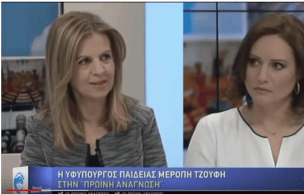 Συνέντευξη της Υφυπουργού Παιδείας Μερόπης Τζούφη στον Τηλεοπτικό Σταθμό της Βουλής των Ελλήνων και την εκπομπή Πρωινή Ανάγνωση για το νομοσχέδιου με τίτλο «Νέες Δομές Υποστήριξης του Εκπαιδευτικού Έργου στην Πρωτοβάθμια & Δευτεροβάθμια Εκπαίδευση».