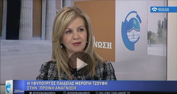 Συνέντευξη Υφ. Παιδείας Μ. Τζούφη στο Κανάλι της Βουλής