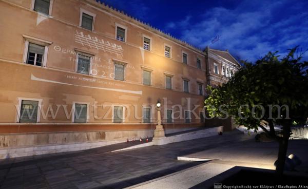 Η Βουλή φωταγωγήθηκε με το λογότυπο του Επετειακού Έτους