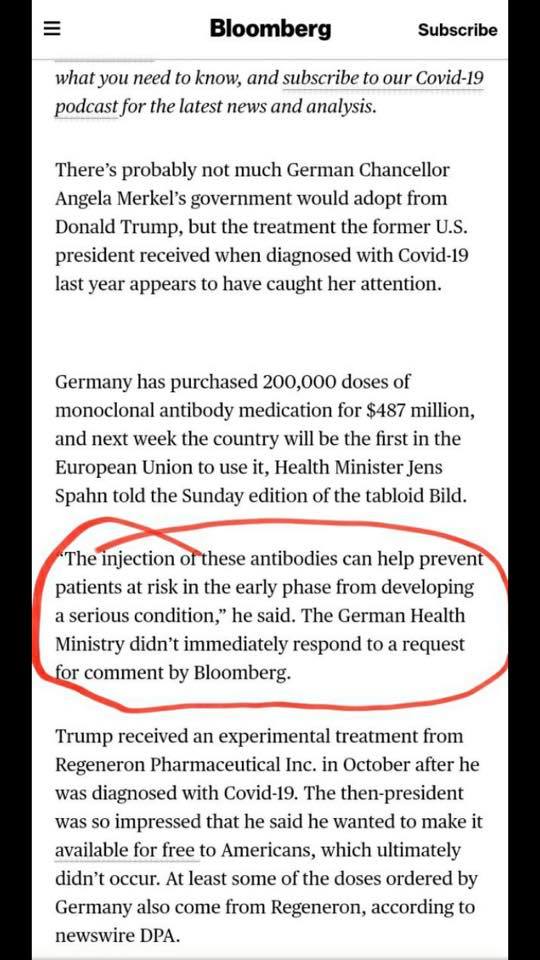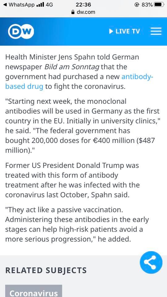 Ο Παύλος Πολάκης τονίζει συγκεκριμένα: «Ο Γερμανός υπουργός Υγείας Jens Span λέει τα ίδια λόγια με αυτά που έλεγα στο βήμα της Βουλής από τις 13 Δεκεμβρίου -και νωρίτερα. Τα φάρμακα αυτά λειτουργούν σαν παθητικός εμβολιασμός. Η χορήγηση αντισωμάτων στα αρχικά στάδια μπορεί να βοηθήσει τους ασθενείς υψηλού κινδύνου να αποφύγουν μια πιο σοβαρή εξέλιξη».