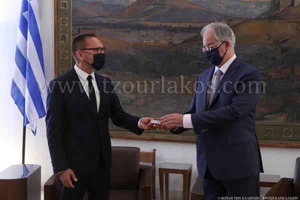 Τον Πρόεδρο της Βουλής, κ. Κωνσταντίνο Τασούλα, επισκέφθηκε σήμερα ο Διοικητής της Τραπέζης της Ελλάδος, κ. Ιωάννης Στουρνάρας, προκειμένου να του επιδώσει την Ενδιάμεση Έκθεση Νομισματικής Πολιτικής 2020-2021. Κατά τη συνάντηση που είχαν, υπεγράφη επίσης Μνημόνιο Ερευνητικής Συνεργασίας μεταξύ της Βουλής των Ελλήνων και της Τραπέζης της Ελλάδος για τη συγκέντρωση, την ψηφιακή επεξεργασία και τη διάθεση των ιστορικών δημοσιονομικών στοιχείων του ελληνικού κράτους για την περίοδο 1833-1995.