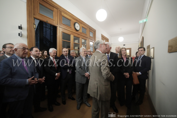 Ο Νικήτας Κακλαμάνης έκανε τα αποκαλυπτήρια της τιμητικής σήμανσης για τη λειτουργία του ΣτΕ σε αίθουσα της Βουλής
