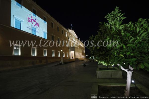 Φωταγώγηση της Βουλής των Ελλήνων με αφορμή την Παγκόσμια Ημέρα για τη Νωτιαία Μυϊκή Ατροφία (SMA)