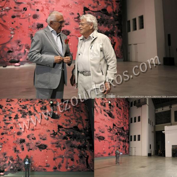 Στον χαιρετισμό του, ο Πρόεδρος της Βουλής χαρακτήρισε το έργο ως «ένα από τα πιο επιβλητικά δημιουργήματα» του σπουδαίου καλλιτέχνη τονίζοντας πως μέσα από τον τίτλο του «προδίδει αφενός την αίσθηση που προκαλεί και αφετέρου το πολυδιάστατο, δημιουργικό συνεχές του εικαστικού που εκτείνεται έως τις μέρες μας».