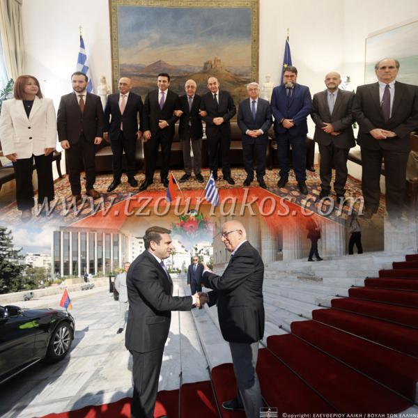 Την εμβάθυνση της κοινοβουλευτικής διπλωματίας ανάμεσα στην Ελλάδα και την Αρμενία, η οποία βασίζεται ήδη στο εξαιρετικό κλίμα συνεργασίας και αλληλεγγύης ανάμεσα στις δυο χώρες υπογράμμισαν στην σημερινή συνάντηση στο Μέγαρο του Ελληνικού Κοινοβουλίου, ο Πρόεδρος της Βουλής των Ελλήνων κ. Νικήτα Κακλαμάνη, με τον Πρόεδρο της Εθνοσυνέλευσης της Δημοκρατίας της Αρμενίας κ. Alen Simonyan, ο οποίος πραγματοποιεί επίσημη επίσκεψη στην Αθήνα.