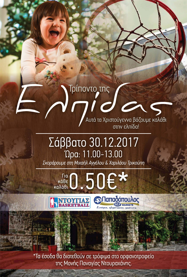 Τρίποντο της Ελπίδας.Το Σάββατο 30 Δεκεμβρίου 2017 στη Μιχαήλ Αγγέλου και Χαριλάου Τρικούπη.Για φιλανθρωπικό σκοπό.