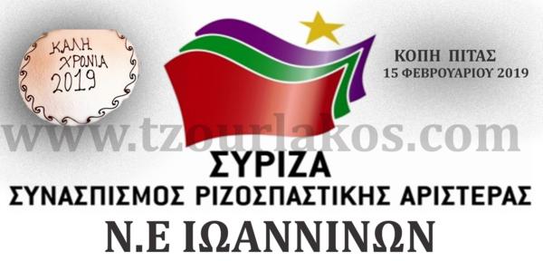 ''ΣΥΡΙΖΑ Ν.Ε Ιωαννίνων''.Κοπή Πίτας την Παρασκευή 15 Φεβρουαρίου 2019