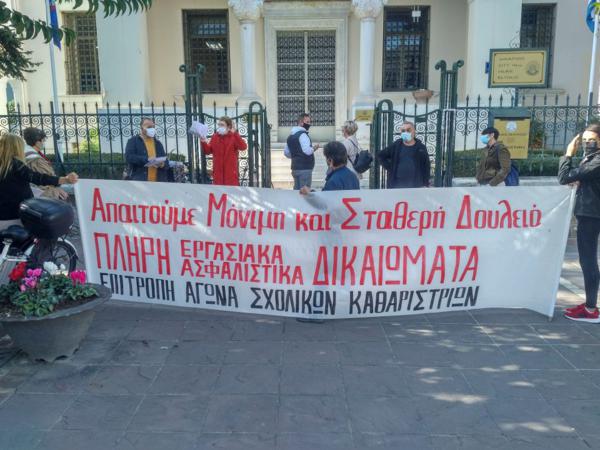 Αντικείμενο της διαμαρτυρίας, σύμφωνα με τον Σύλλογο, είναι η απουσία μέριμνας του Οργανισμού Κοινωνικής Προστασίας – Αλληλεγγύης και Προσχολικής Αγωγής, εν μέσω πανδημίας για στελέχωση των παιδικών σταθμών με παιδίατρο, των υπηρεσιών με γιατρό εργασίας και για εξοπλισμό των εργαζομένων στον κλάδο της καθαριότητας, όπως και για την απουσία επιμόρφωσης για τον τρόπο καθαρισμού με βάση τα πρωτόκολλα του ΕΟΔΥ.
