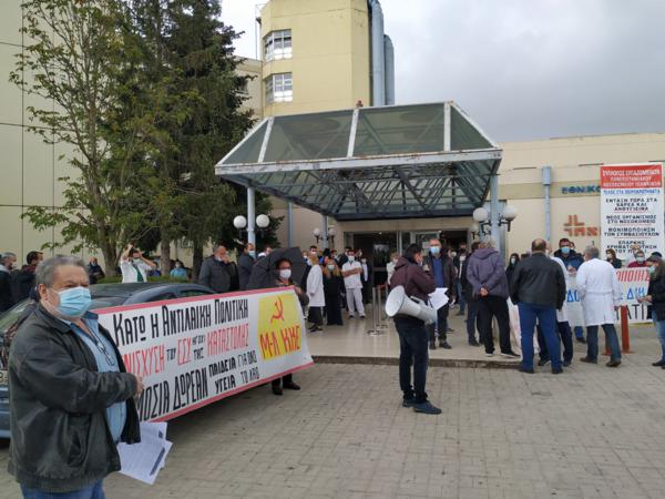 Συγκέντρωση των συμβασιούχων του Πανεπιστημιακού Νοσοκομείου αλλά και των φορέων που τους στηρίζουν, όπως και εργαζόμενων του νοσοκομείου με μόνιμη σχέση εργασίας, πραγματοποιήθηκε το πρωί της Τετάρτης, με αφορμή την Παγκόσμια Ημέρα Υγείας που εορτάζεται στις 7 Απριλίου.