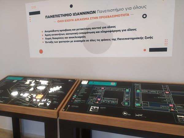 Οι απτικοί χάρτες αποτελούν σημαντική πηγή πληροφόρησης του περιβάλλοντος χώρου για άτομα με προβλήματα όρασης. Αποτυπώνουν ανάγλυφα βασικά σημεία ενδιαφέροντος της Πανεπιστημιούπολης και συνοδεύονται από περιγραφές Braille, ηχητικές περιγραφές και QR codes, που παραπέμπουν σε χρήσιμες ιστοσελίδες. Επιπλέον, οι οδηγοί όδευσης αποτελούν αναγκαιότητα για την ορθή καθοδήγηση και ασφαλή μετακίνηση ατόμων με προβλήματα όρασης προς σημεία εξυπηρέτησης, διδασκαλίας και πληροφόρησης, και σκοπός είναι να επεκταθούν σε όλα τα βασικά κτίρια.