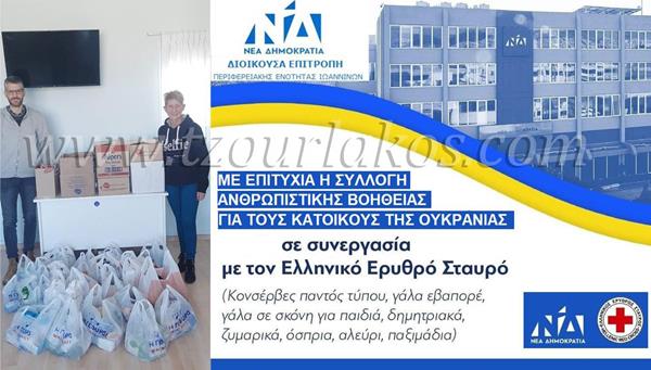 Θερμή ήταν η ανταπόκριση των μελών του κόμματος της Νέας Δημοκρατίας, πολιτών, επιχειρήσεων και φορέων στο κάλεσμα που απεύθυνε η Διοικούσα Επιτροπή Ιωαννίνων για την συγκέντρωση ειδών πρώτης ανάγκης για τους κατοίκους της Ουκρανίας σε συνεργασία με τον Ελληνικό Ερυθρό Σταυρό - Hellenic Red Cross.