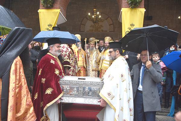 Από το πρωί στον πανηγυρίζοντα Ιερό Ναό επί της Πλατείας Πάργης, οι πιστοί προσέρχονταν προκειμένου να ανάψουν ένα κερί και να προσκυνήσουν, ενώ πλήθος κόσμου ήταν μέσα και έξω από το Ναό κατά την Αρχιερατική Θεία Λειτουργία. Ωστόσο, την προγραμματισμένη ώρα της πραγματοποίησης της λιτανείας και τη στιγμή που μαθητές, φιλαρμονική και στρατιωτική μπάντα ετοιμαζόταν για να ξεκινήσει με προορισμό τον Μητροπολιτικό Ναό του Αγίου Αθανασίου, η βροχόπτωση εντάθηκε. Αποτέλεσμα αυτής ήταν η Μητρόπολη να πάρει την απόφαση για ακύρωσή της.