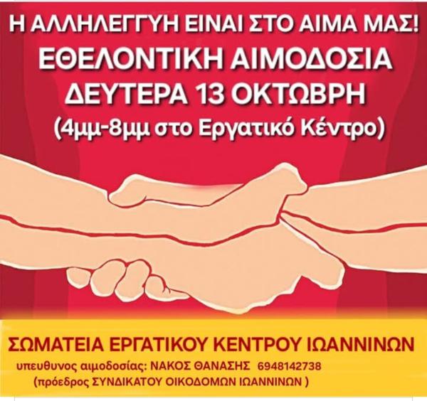 Κάθε χρόνο με τις εθελοντικές μας αιμοδοσίες στηρίζουμε - διαθέτουμε δεκάδες φιάλες αίμα σε συναδέλφους - συναδέλφισσες και στις οικογένειες τους που το χρειάζονται! Με τους χώρους δουλειάς να μετατρέπονται σε αρένες και δεκάδες σακατεμένους εργάτες και εργάτριες η ανάγκη για αίμα μεγαλώνει!